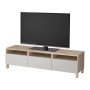میزهای ال سی دی دارای ابعاد و اندازههای بزرگ و کوچکی هستند و باید متناسب با سالن منزل و فضای در اختیار کاربران انتخاب شوند. میز تی وی طوسی رنگ ایکیا مدل BESTA دارای سه قسمت برای قرار دادن گیرندههای دیجیتال، یا پخشکنندههای صوتی و تصویری است و دارای سه کشو برای قرار دادن لوازم جانبی و یا لوازم ضروری دیگر میباشد. این محصول برنگ چوب میباشد و کشوها دارای رنگ خاکستری هستند.
